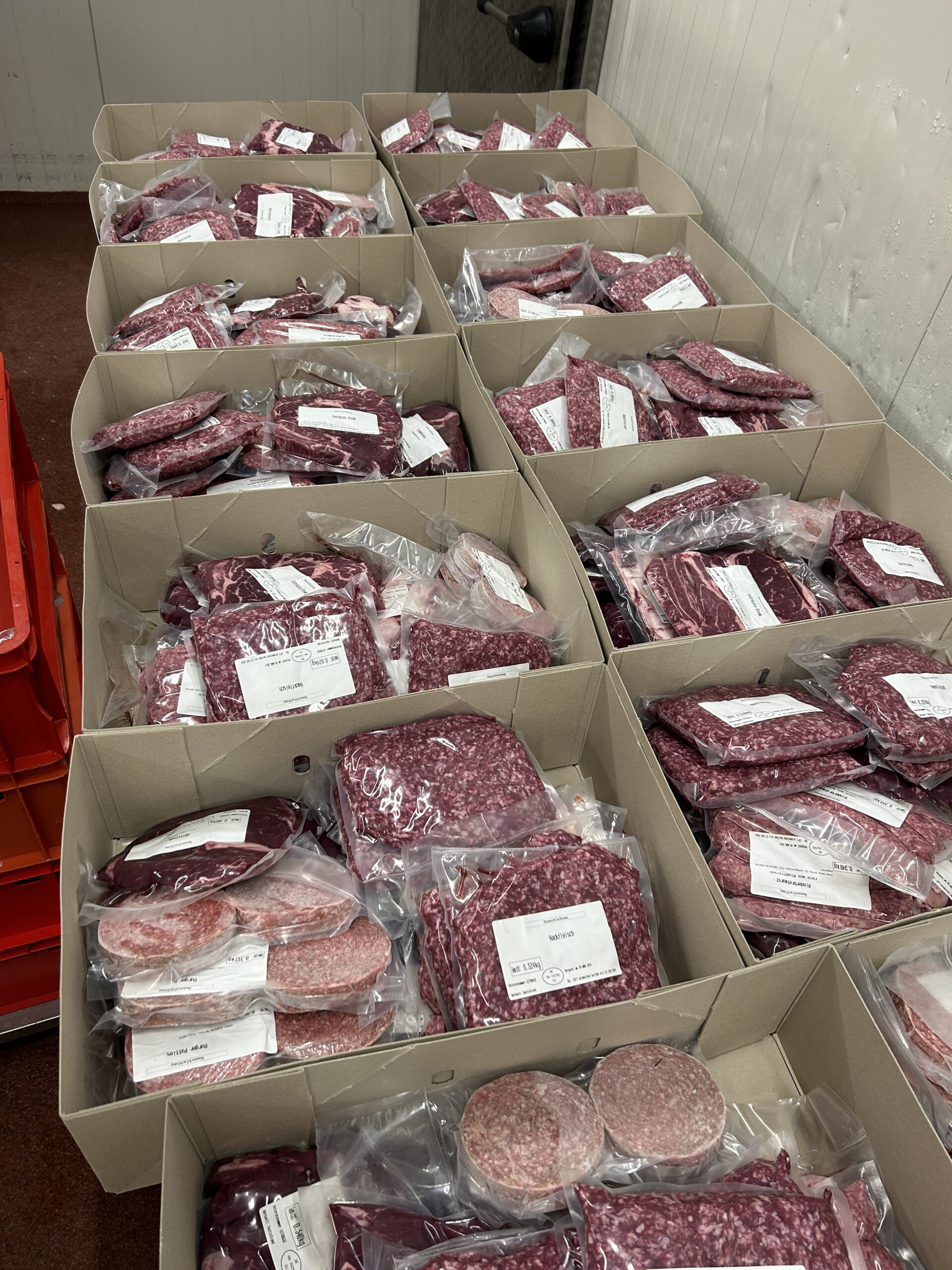 Sobald wir mit den Bestellungen den Bedarf an einem Tier gedeckt haben, wird dieses stressfrei seinen letzten Gang gehen. Dieses kann durchaus dazu führen, dass nach Ihrer Bestellung noch etwas Zeit ins Land geht – auch unter Berücksichtigung der intensiven Reifezeit, die das Fleisch benötigt, um seinen besonderen Geschmack zu entfalten.